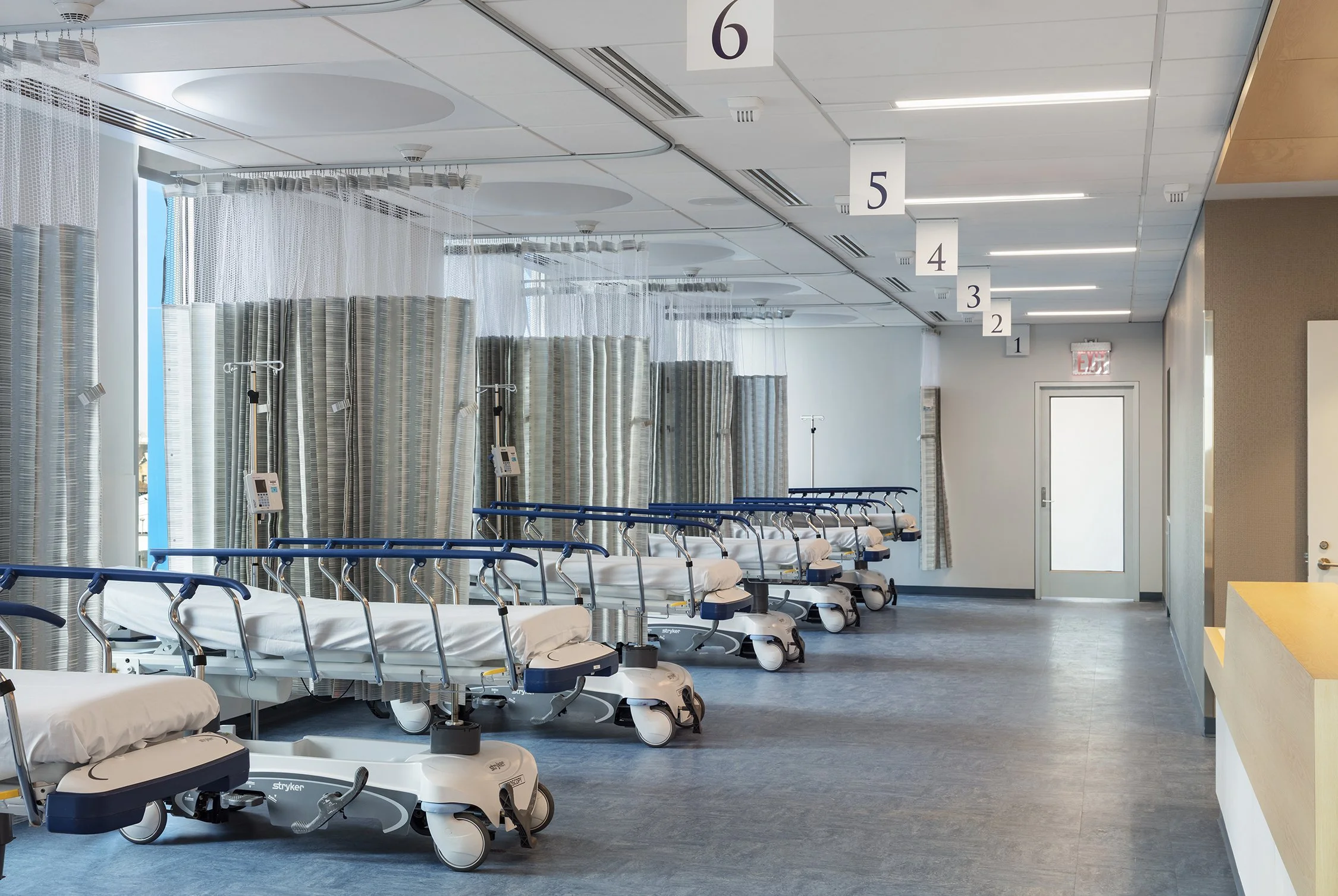 The commission for this new ambulatory care facility was initiated by the need to relocate out-patient care facilities from the main hospital building, as well as to consolidate behavioral health services under one roof. The new four-story and cellar building contains a 7,700 sq ft radiation/oncology, a 7,700 sq ft primary care clinic with 12 exam rooms, a 2,500 sq ft infusion treatment clinic with eight infusion stations. The project also includes a 12,000 sq ft behavioral health clinic with several large group counseling rooms and a large multi-functional space for community outreach programs and events. A separate but equal entrance and passenger elevator is provided for behavioral health clients, with an internal communicating stair provided between the two floors that house behavioral health programs to afford flexibility and efficient use of space.